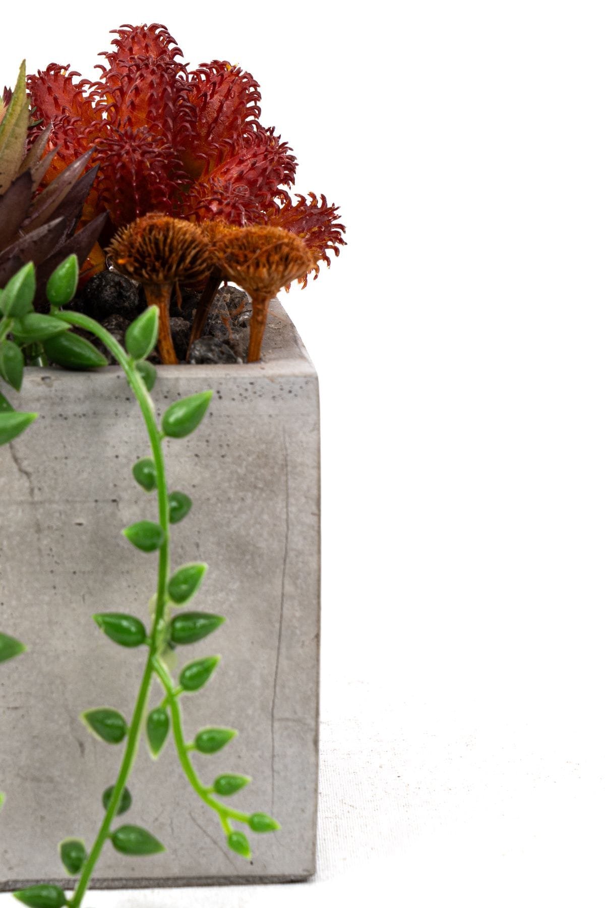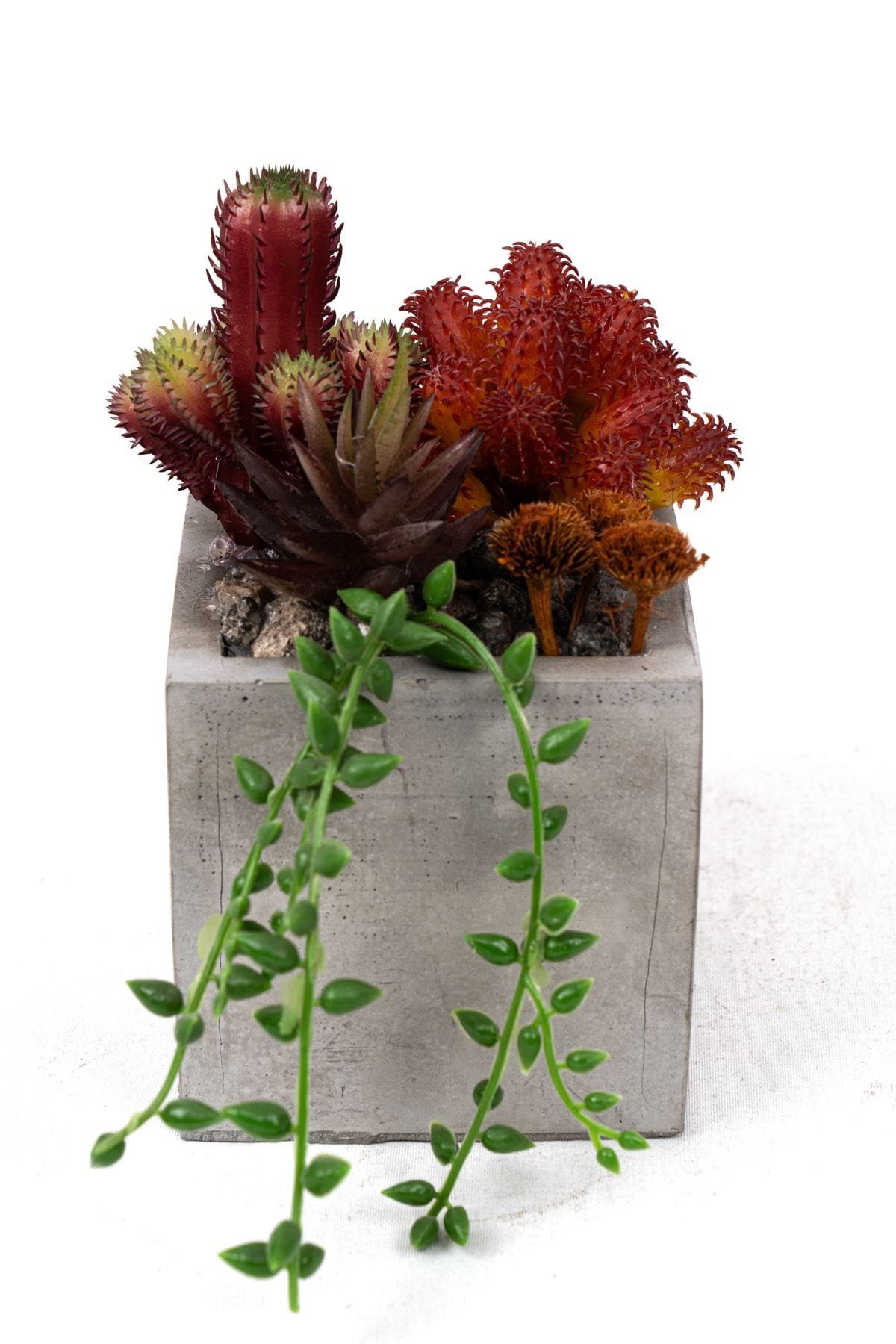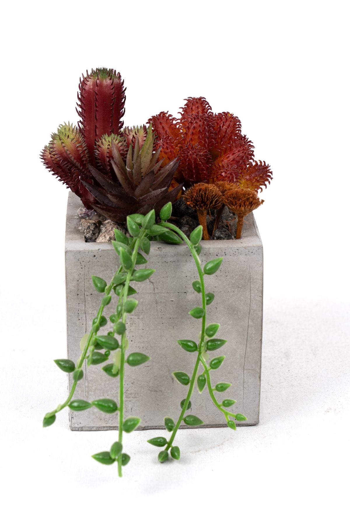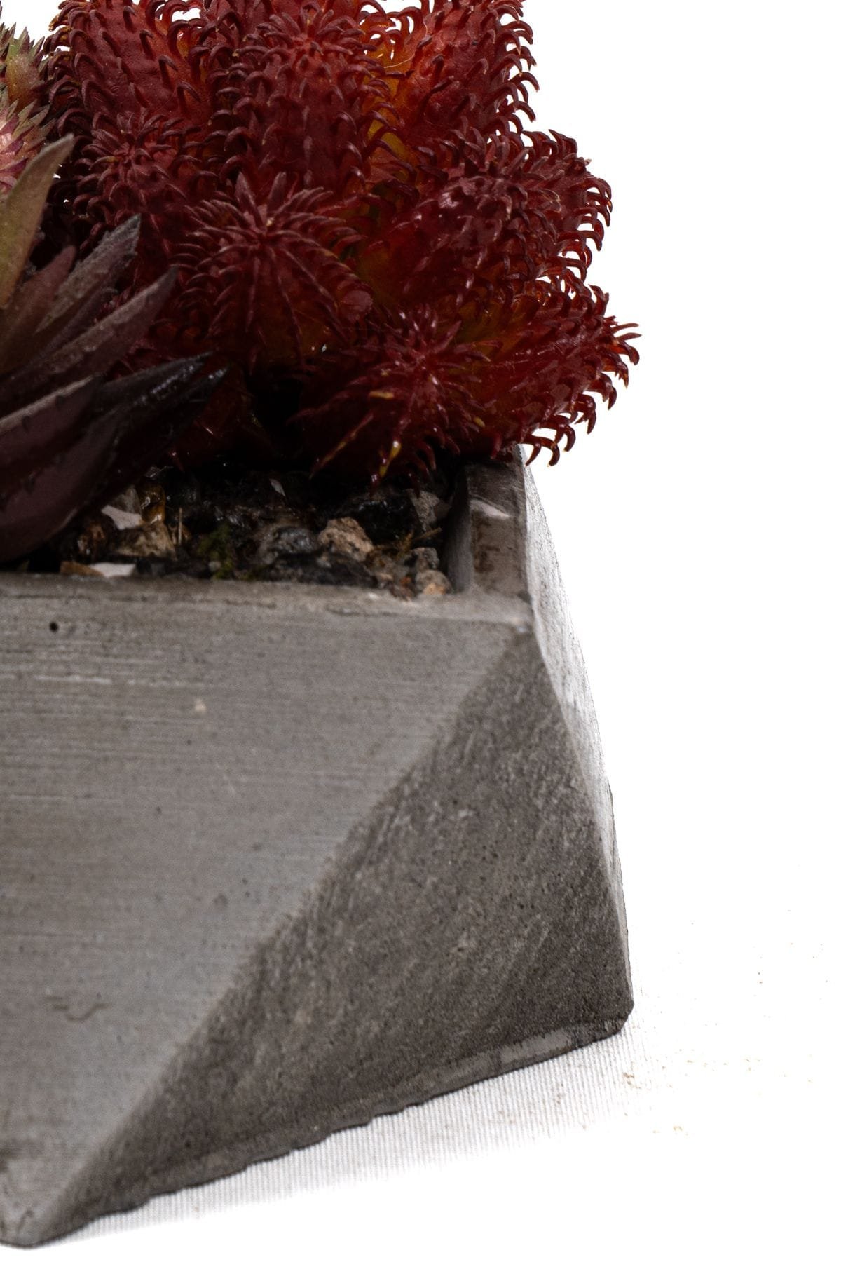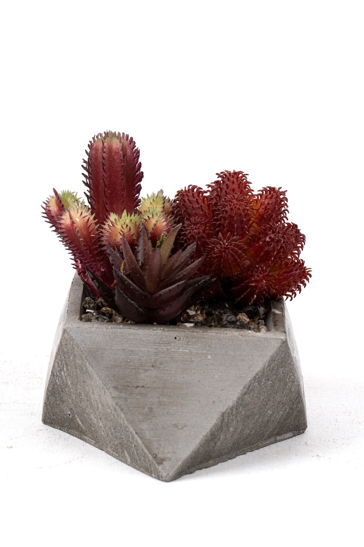 - Gri Beton Saksıda Bordo Renkli 3 Lü Kaktüs Seti