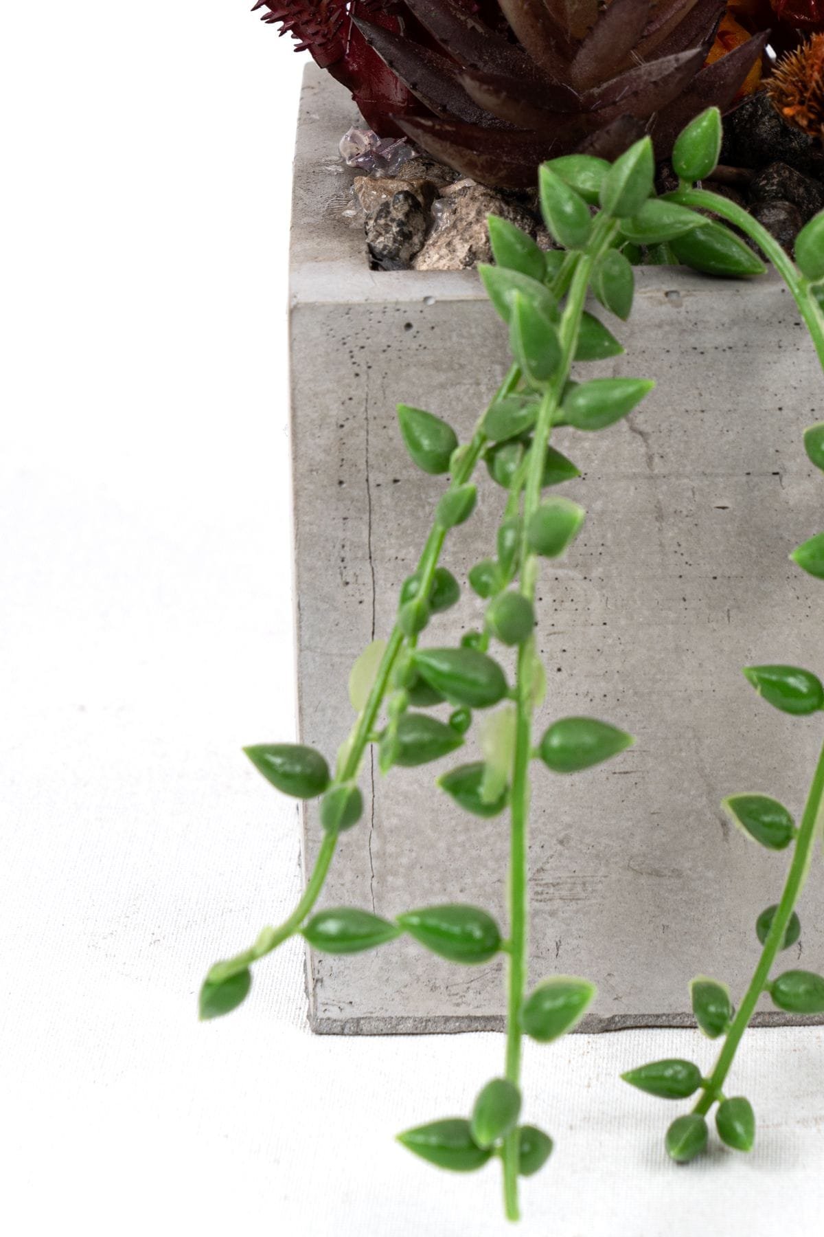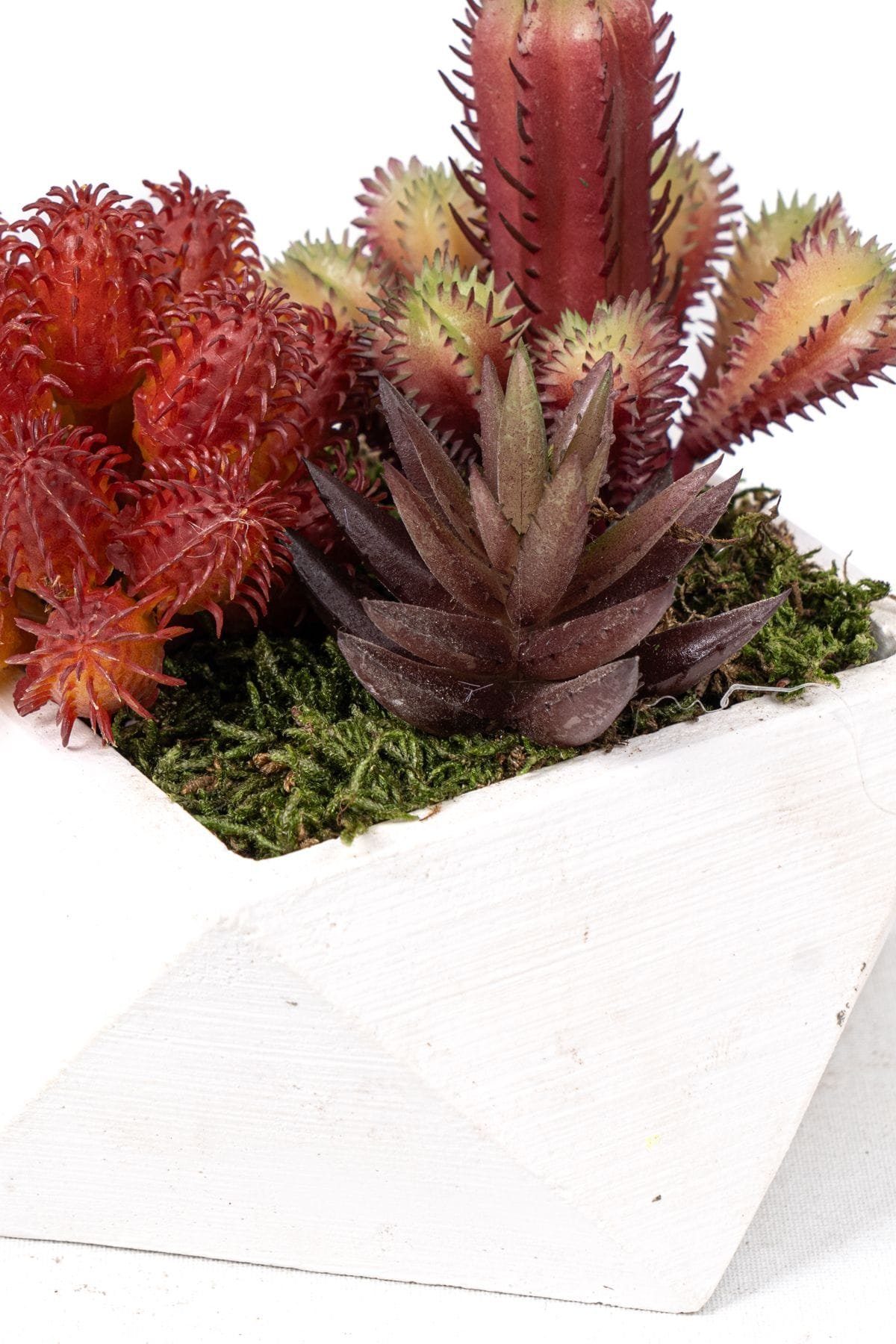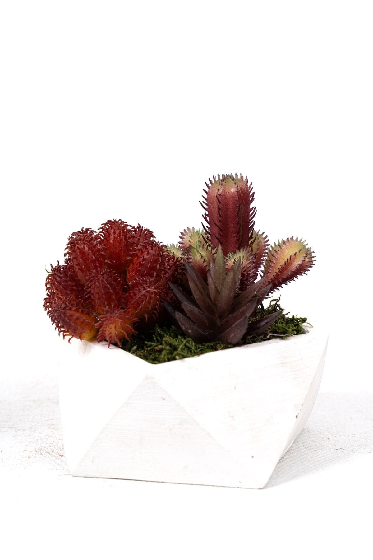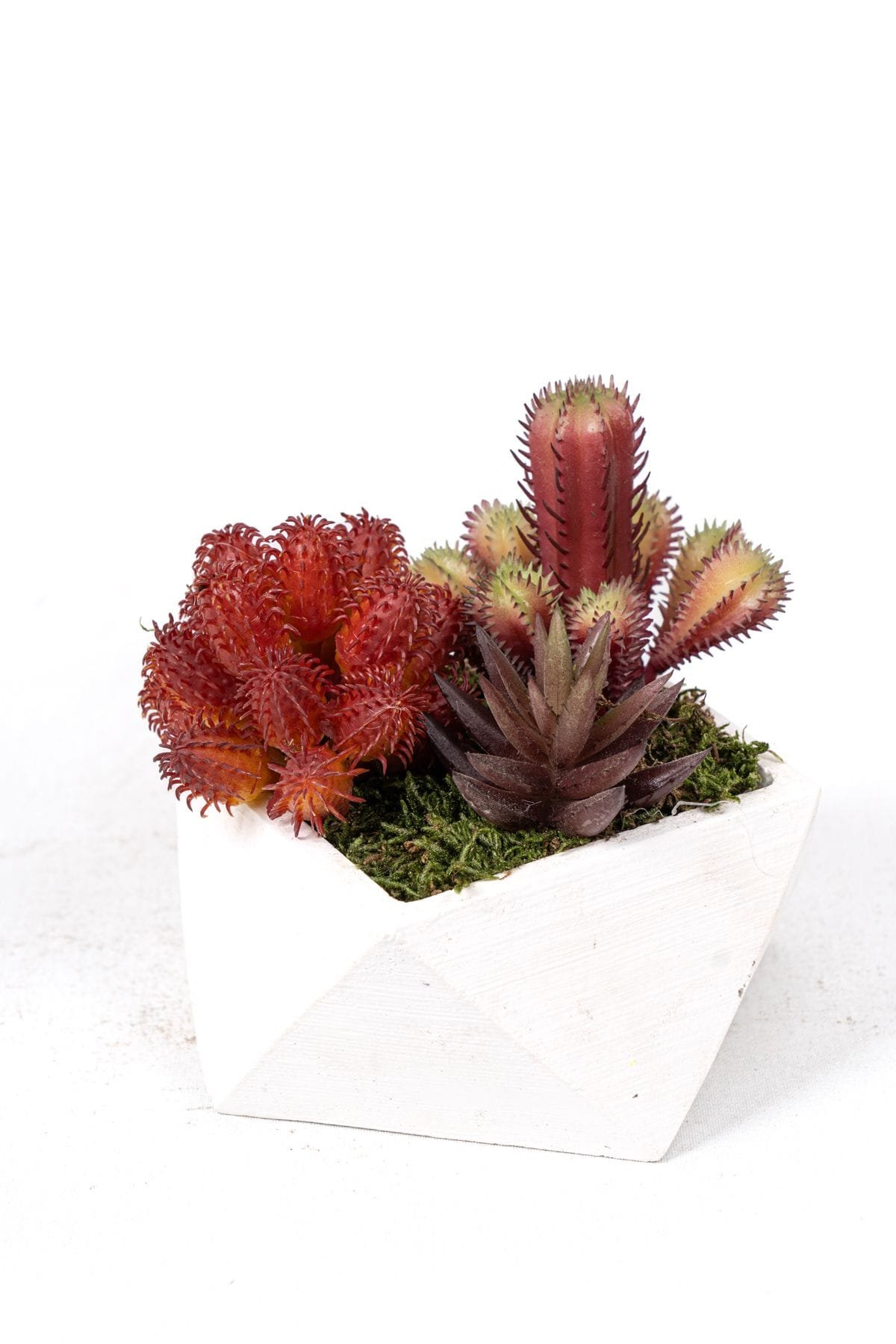 - Beyaz Beton Saksıda Bordo Renkli 3 Lü Kaktüs Seti