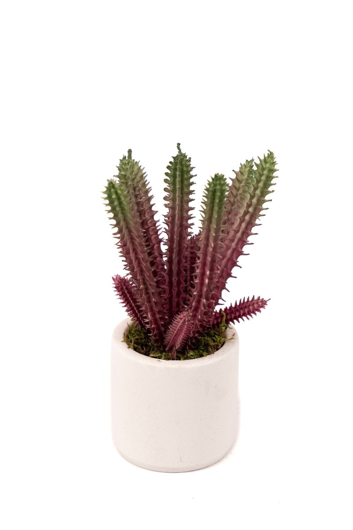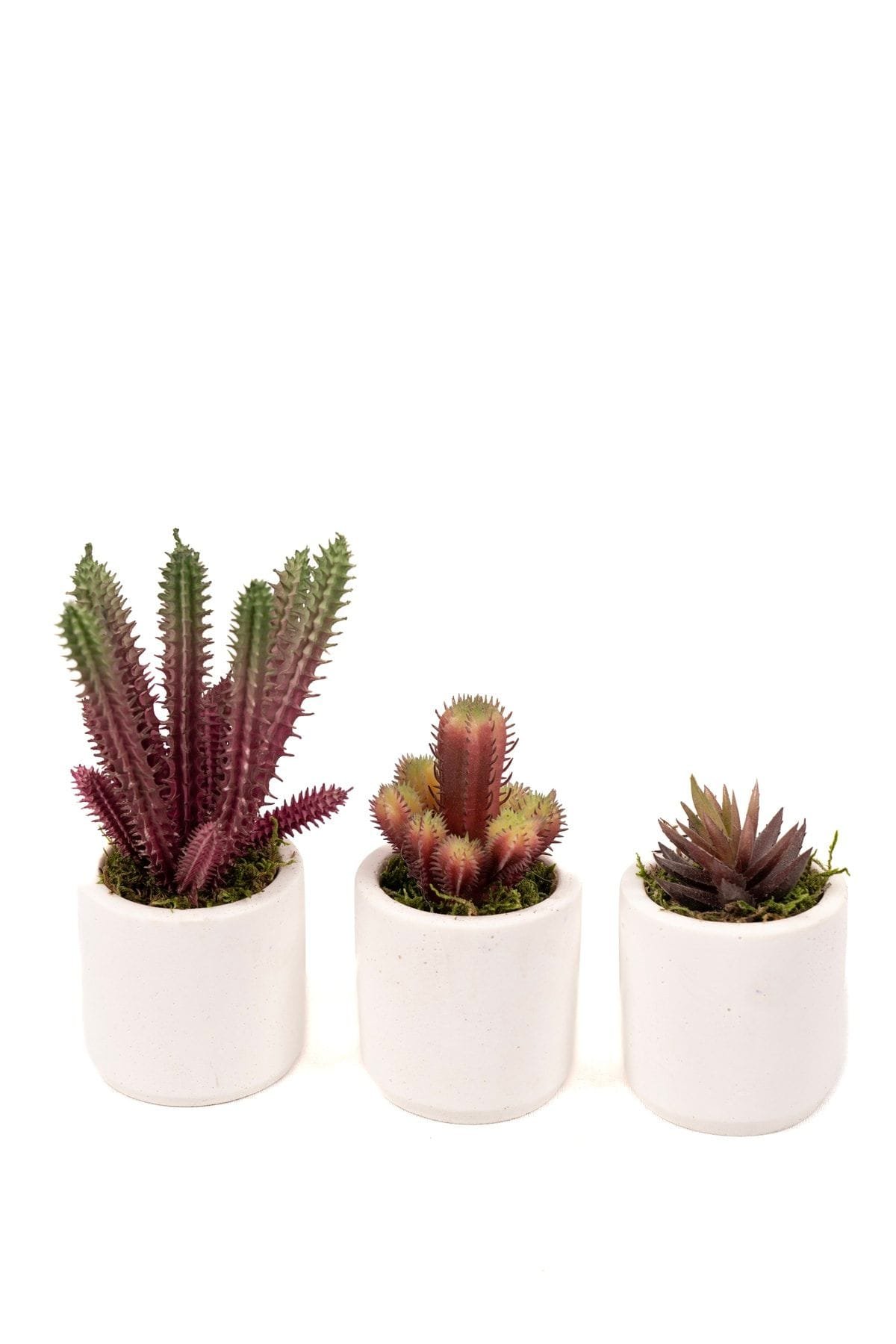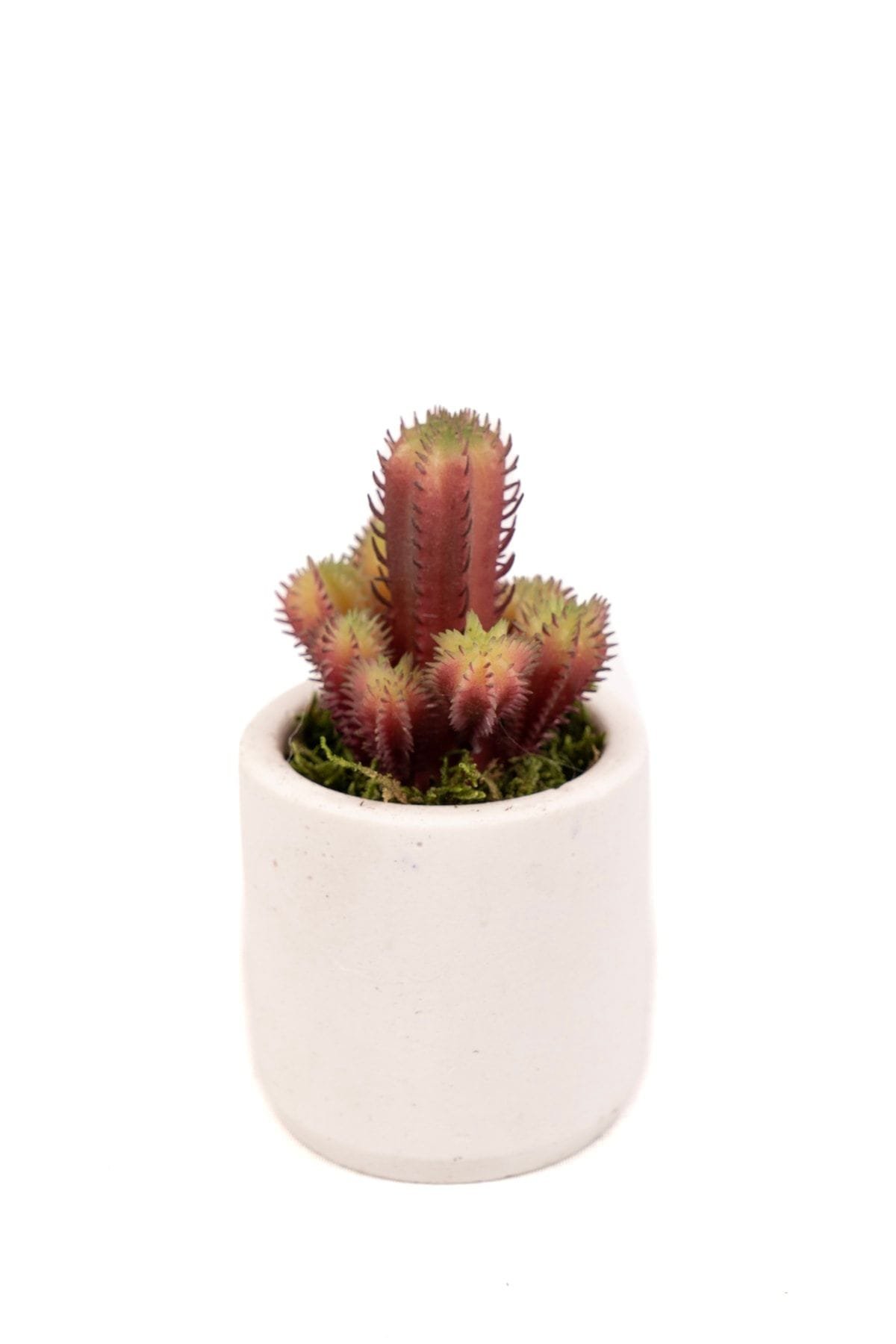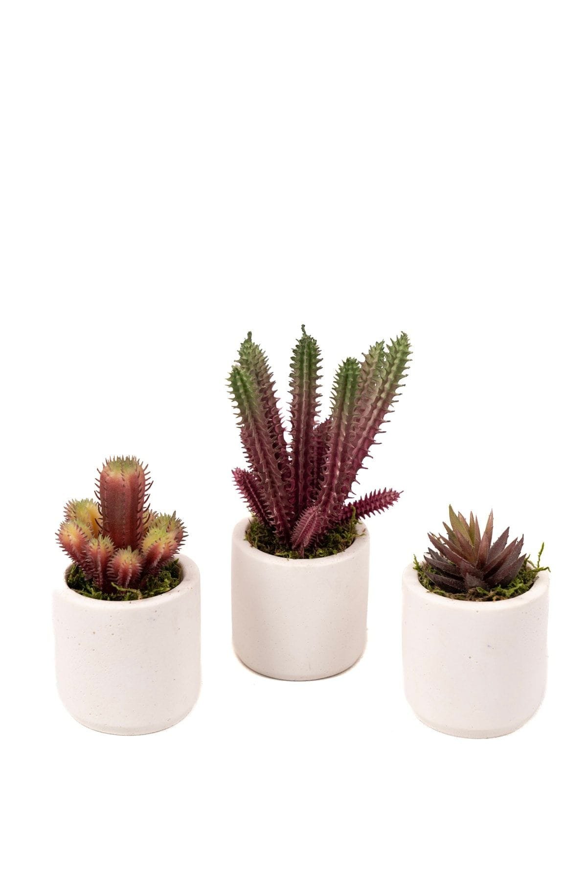 Beyaz Beton Saksıda Bordo Renkli 3 Lü Kaktüs Seti