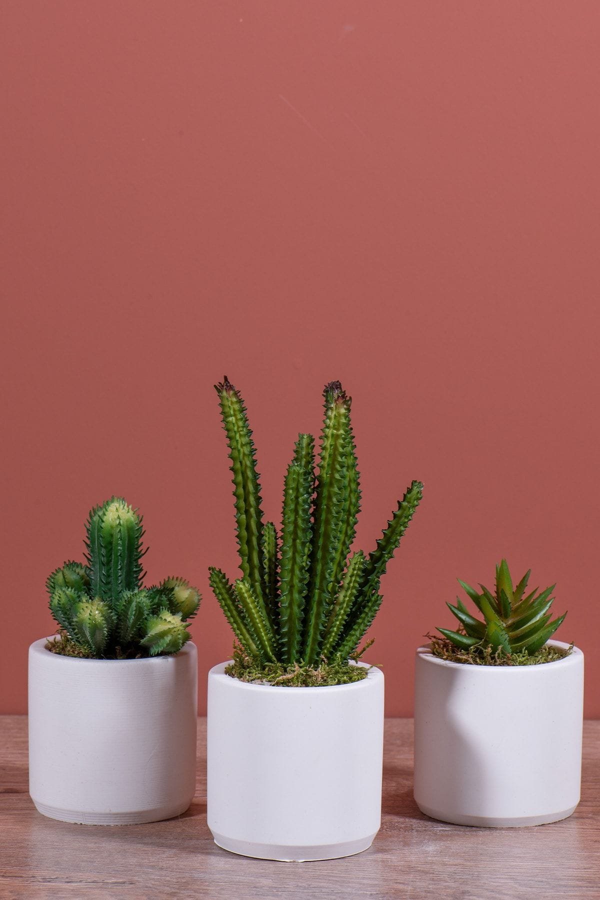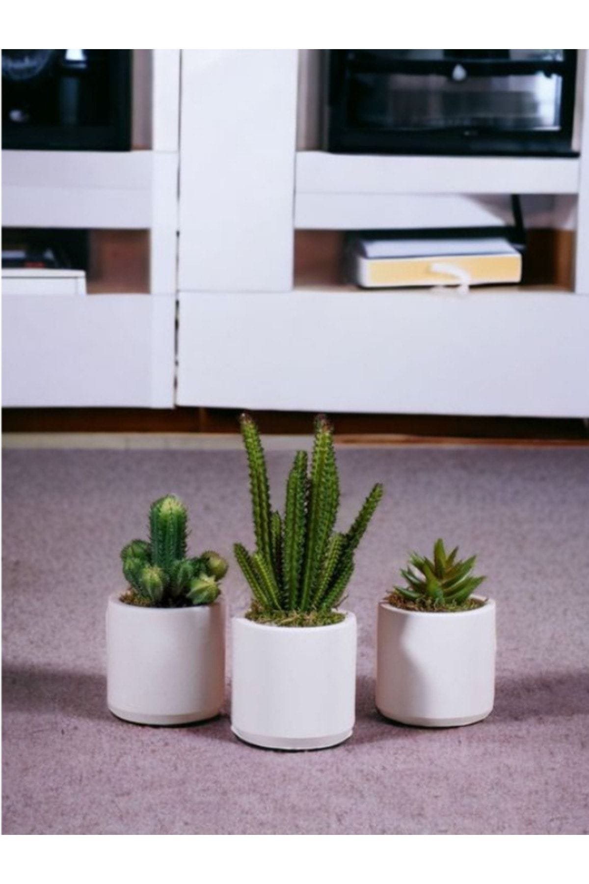 - Beyaz Beton Saksıda Bordo Renkli 3 Lü Kaktüs Seti