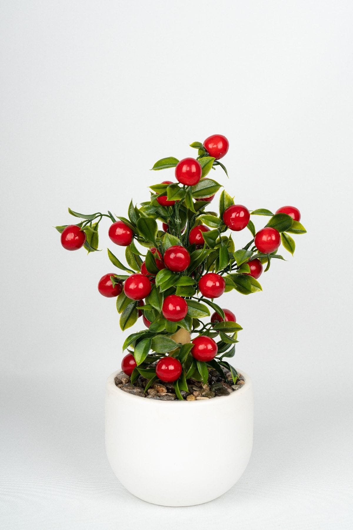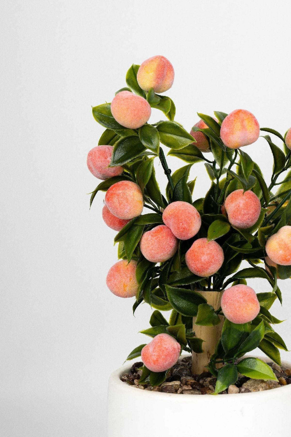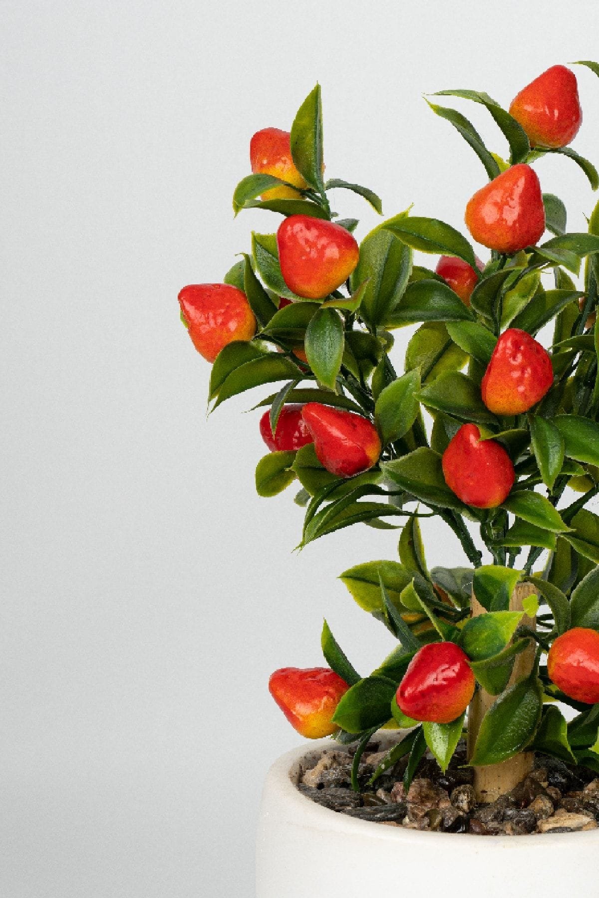 Beyaz Beton Saksıda Yapay Mandalina Ağacı
