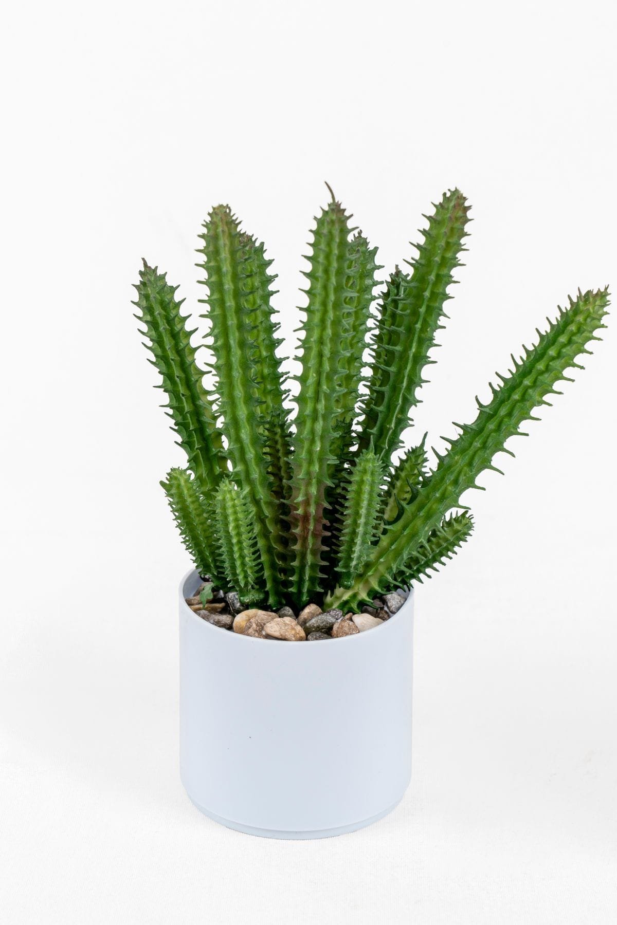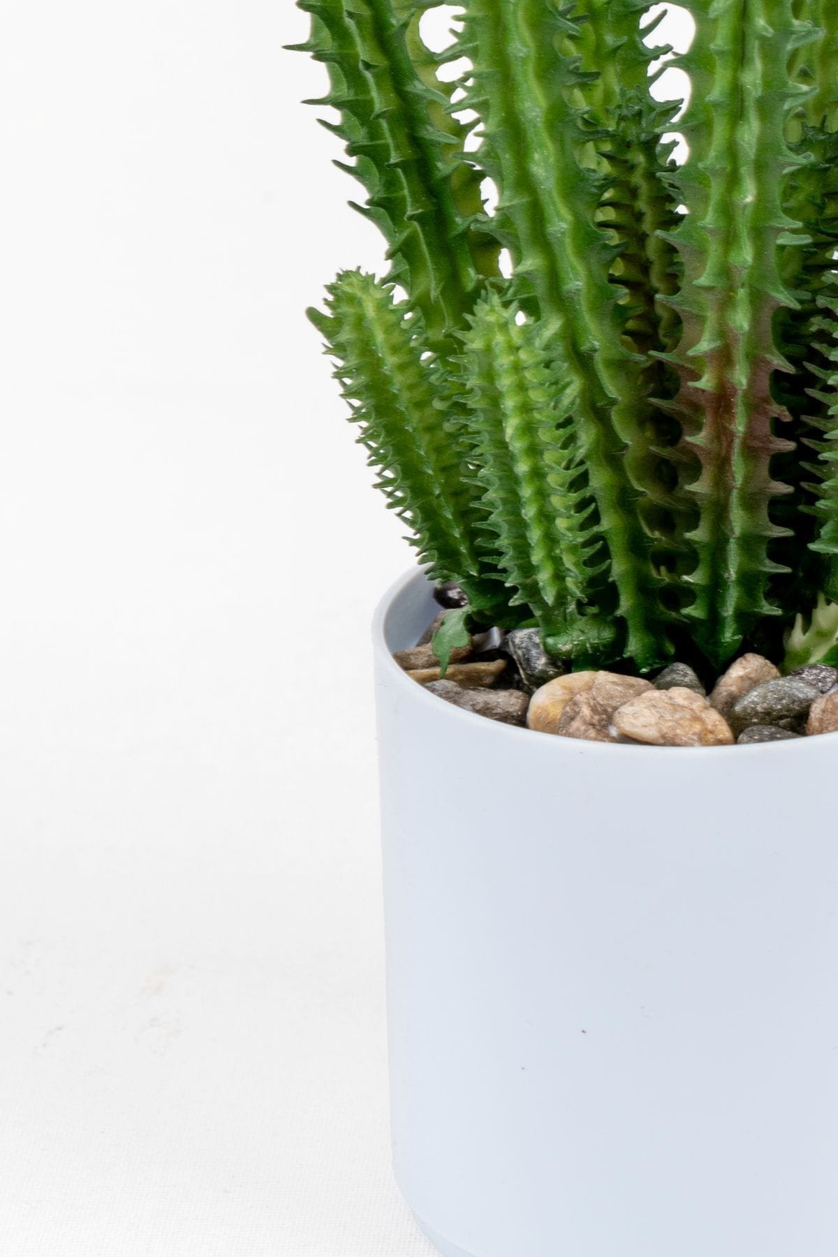 Beyaz Renkli Saksıda Yapay Kaktüs Sukulent
