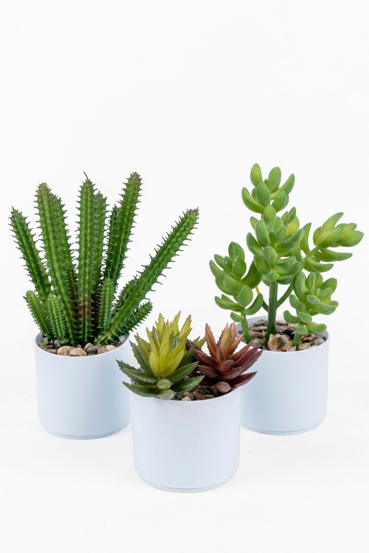 Doğal taşlarla kaplı beyaz renkli saksısında, Renkli yapraklarıyla sakinliği simgeleyen sukulent kaktüsler ile dekorasyonlara renk katabilir, doğal bir görsellik oluşturabilirsiniz. ; Ürün, yaşam alanlarınızın dikkat çekici objelerinden biri olacaktır. ; Evinizde, ofisinizde, çalışma ve kişisel odalarınızda kısaca tüm yaşam alanlarınızda kullanabilirsiniz. ; Gerçek çiçeklerin aksine, ağacımız sonsuza dek canlı ve yeşil rengini korumaktadır. ; Her hangi bir bakım gerektirmez. ; Ağaç kutudan çıkarıldığında tam boyutuna ulaşması için sadece 2-3 dakikaya ihtiyacınız vardır. ; Tüm dallar, gerektiğinde farklı konumlara ayarlanabilmeleri için sağlam metal tellerle donatılmıştır, ayrıca mini ışıkları ve diğer küçük nesneleri destekleyecek kadar güçlüdürler. ; Çiçek plastik saksı içerisine beton ile sabitlenmiş olup, çocuklarınız ve evcil hayvanlarınız temas ettiğinde hemen devrilme yapmaz. ; Salon çiçeği olarak dekorasyonlarınıza ve tezgahlarınıza değer katabilirsiniz. ; Saksı rengi:Beyaz ; Saksı yüksekliği:6,5 cm ; Saksı çapı:6,5 cm ; Saksı dahil toplam yükseklik:13 cm-20 cm ;