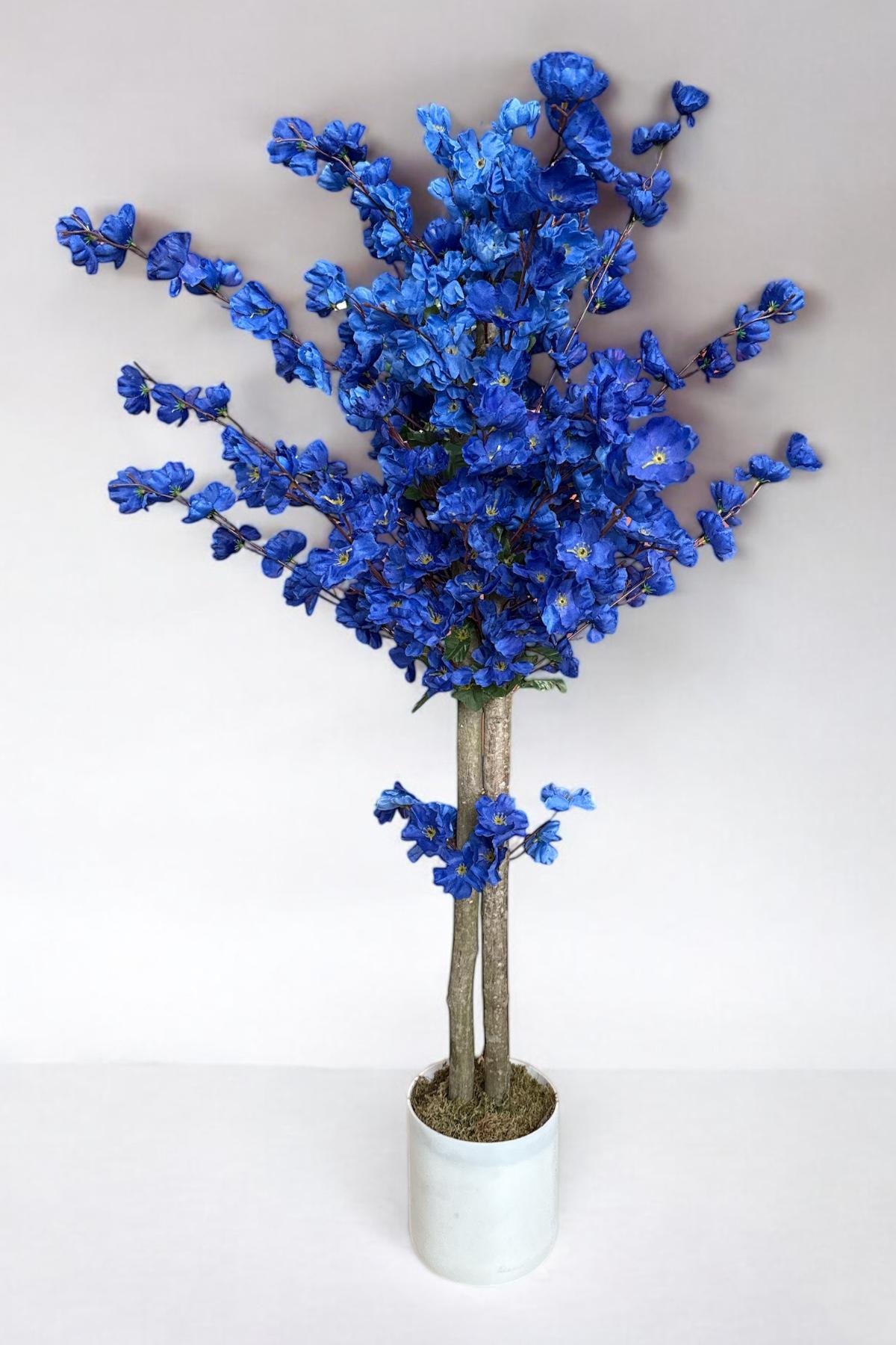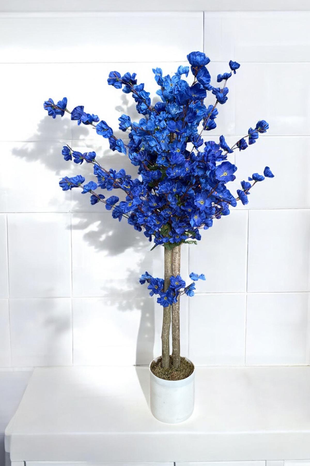 120 cm boyutundaki lacivert yapay Japon bahardalı ağacı, doğanın zarafetini dekorasyonunuza taşıyor.