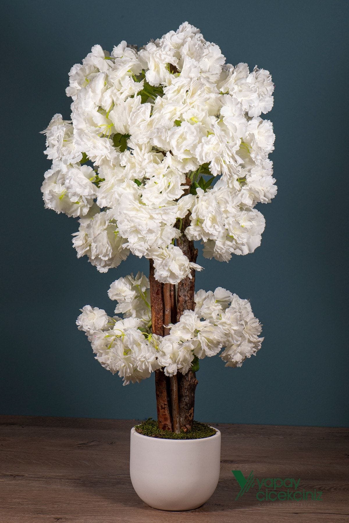 Beyaz Saksıda 100 Cm Luks Bahar Dalı Ağacı