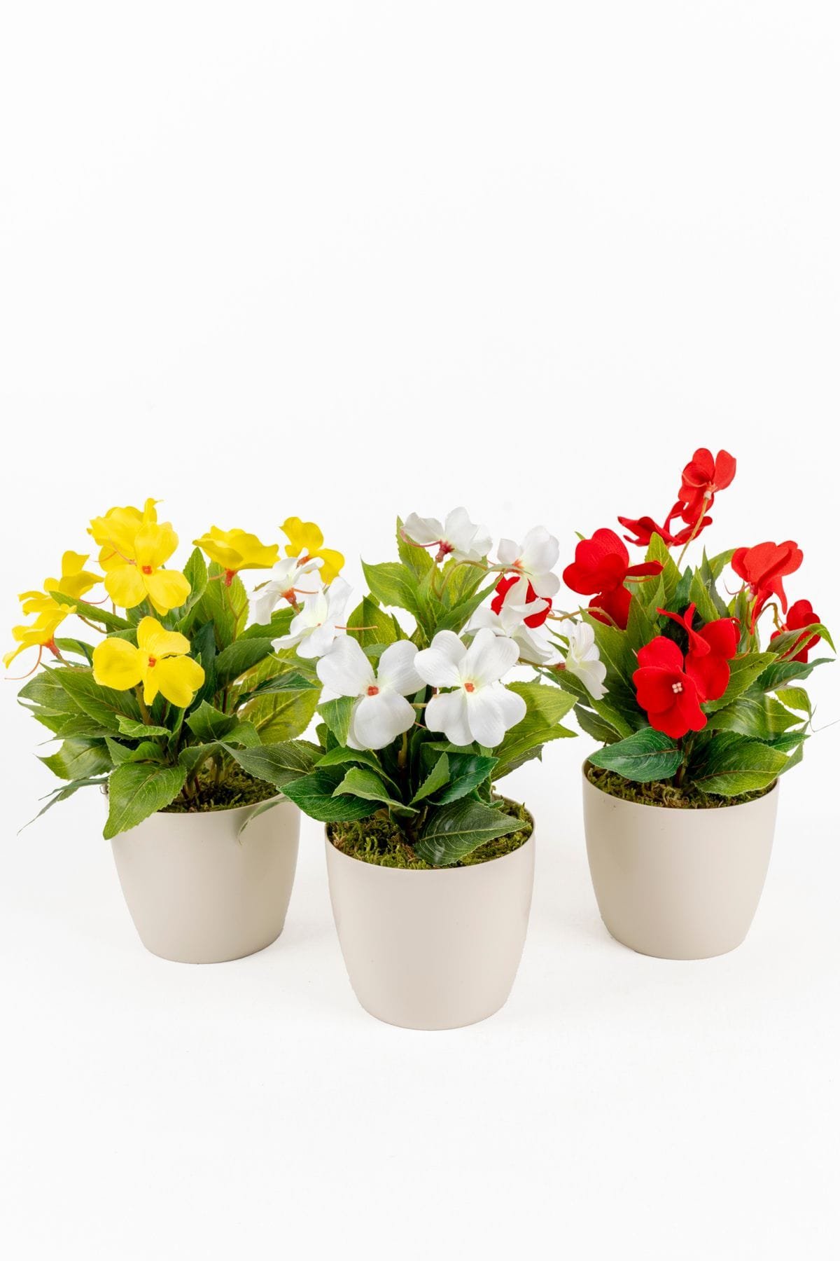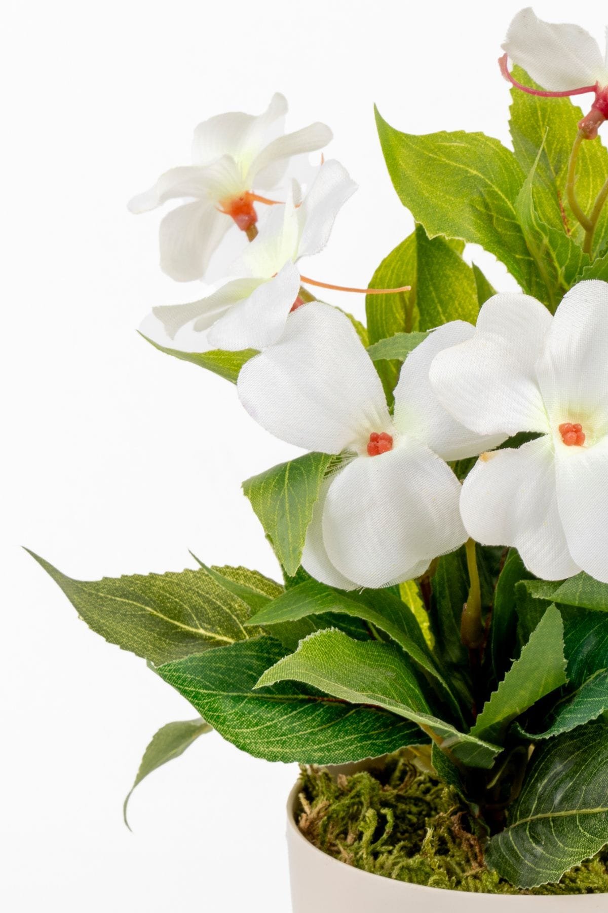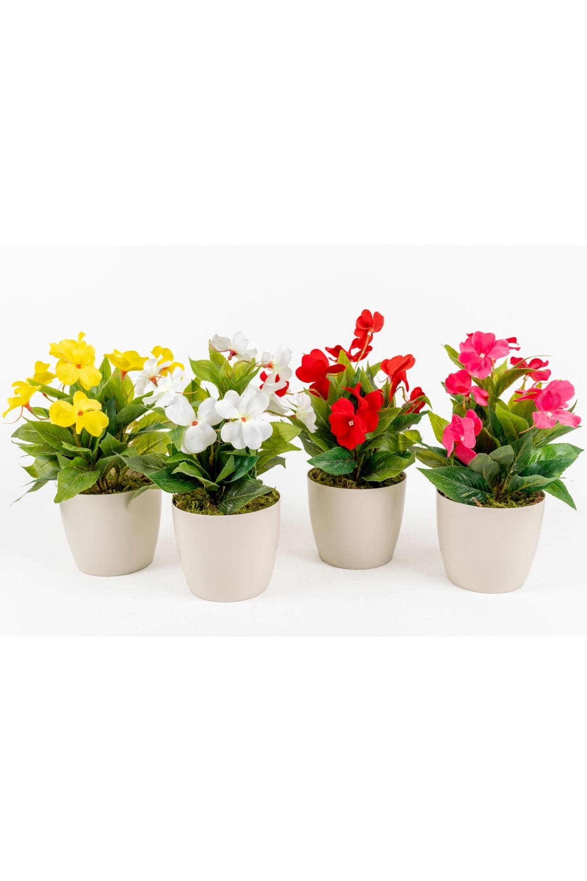 Beyaz Saksıda Dekoratif Yapay Menekşe Çiçeği 25 Cm