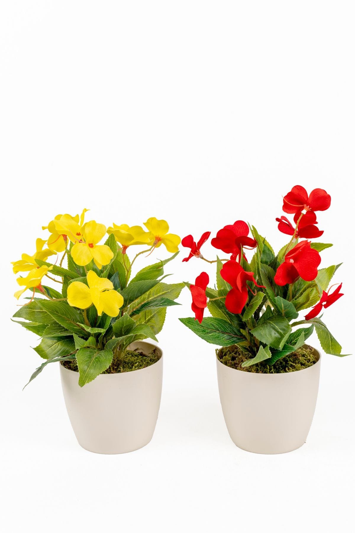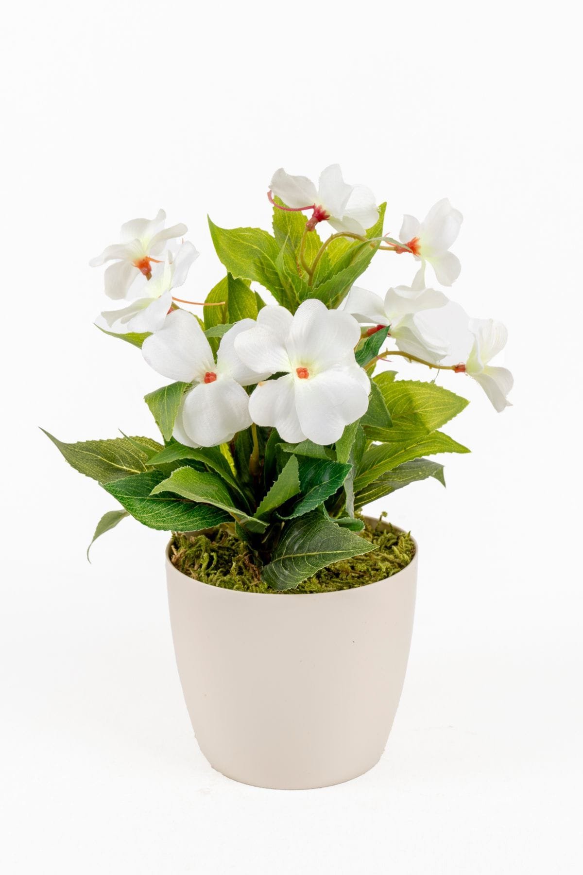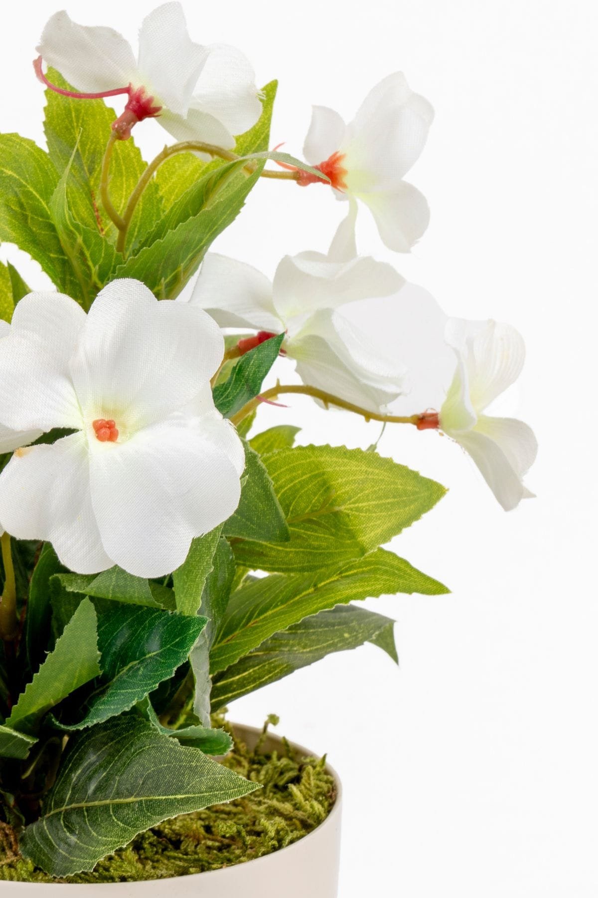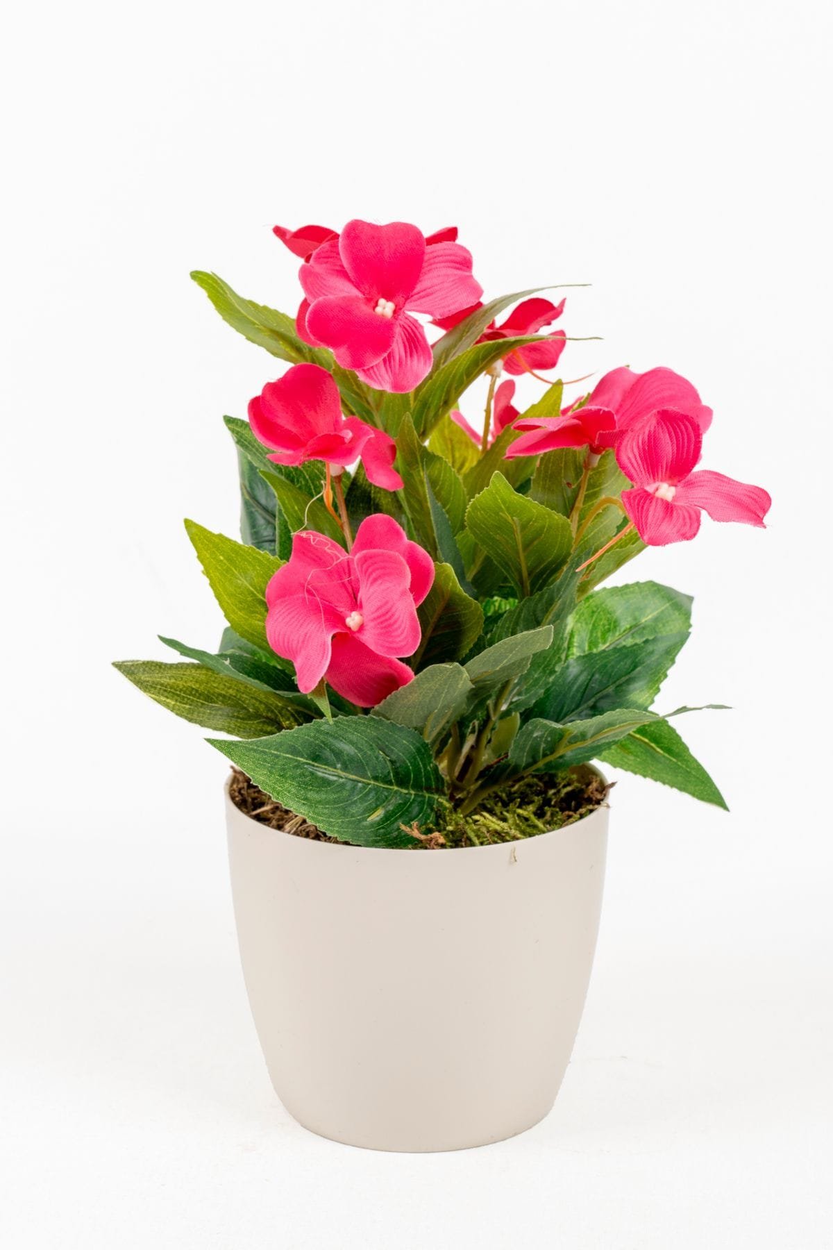 Beyaz Saksıda Dekoratif Yapay Menekşe Çiçeği 25 Cm