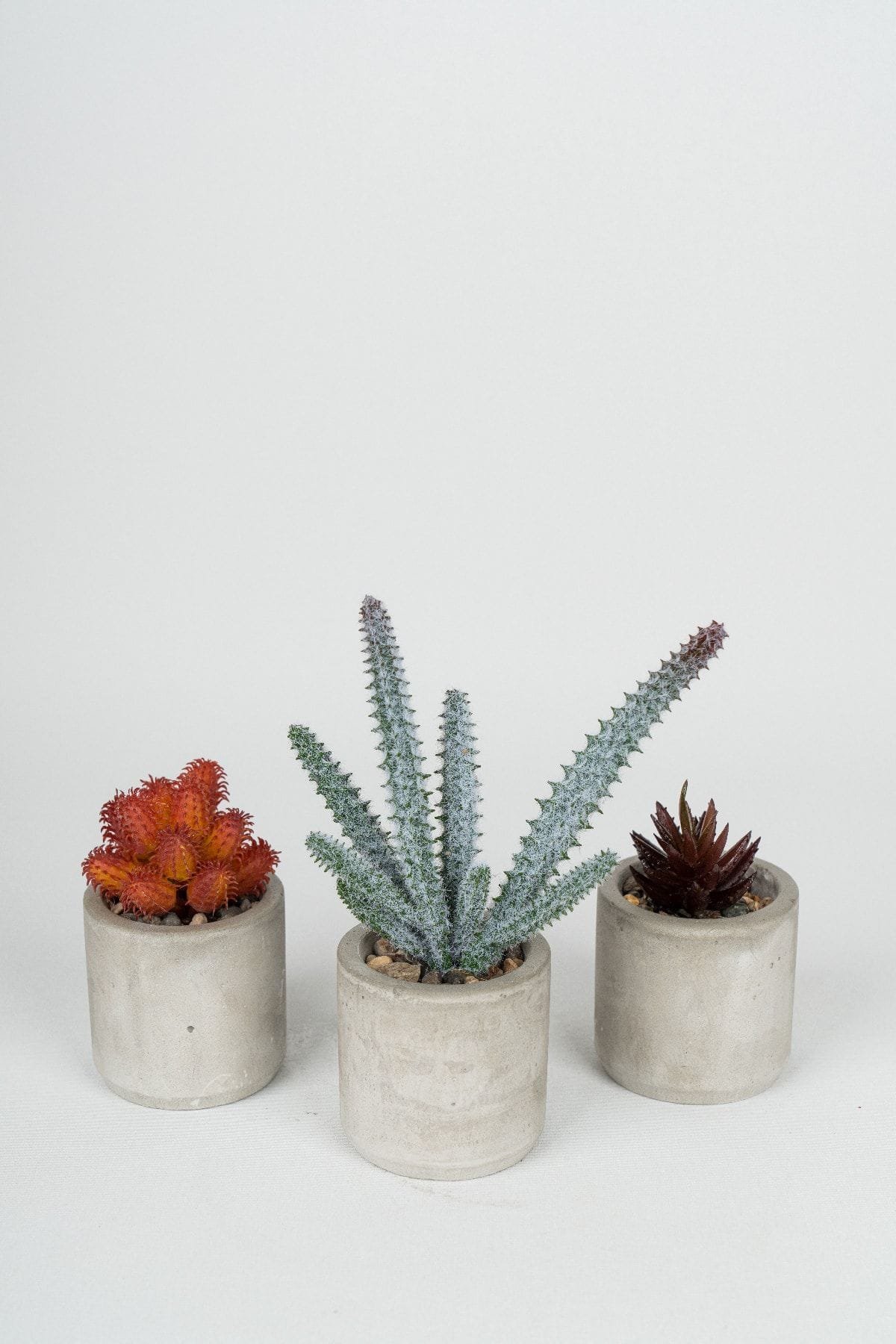 - Gri Beton Saksıda Bordo Renkli 3 Lü Kaktüs Seti