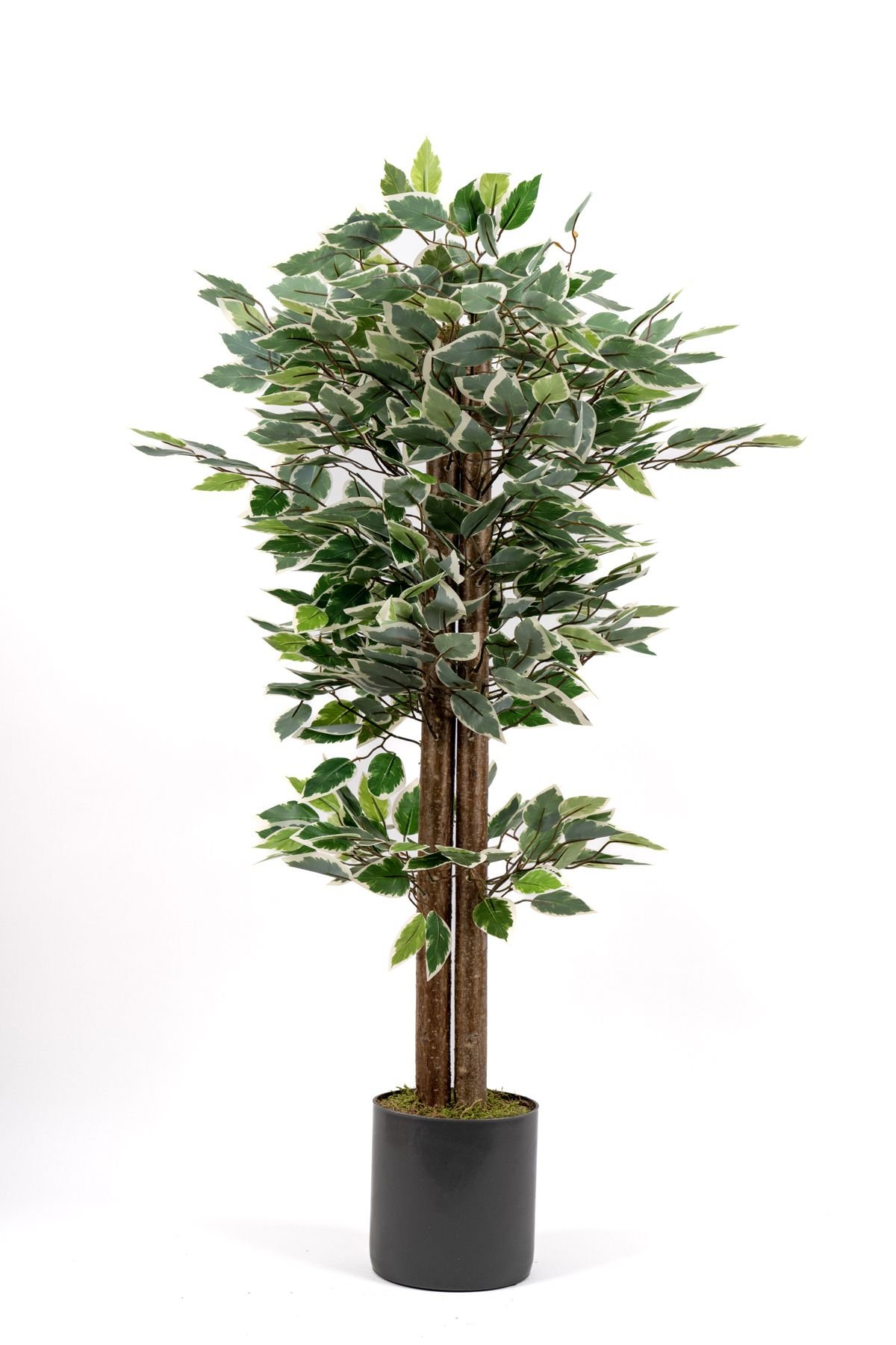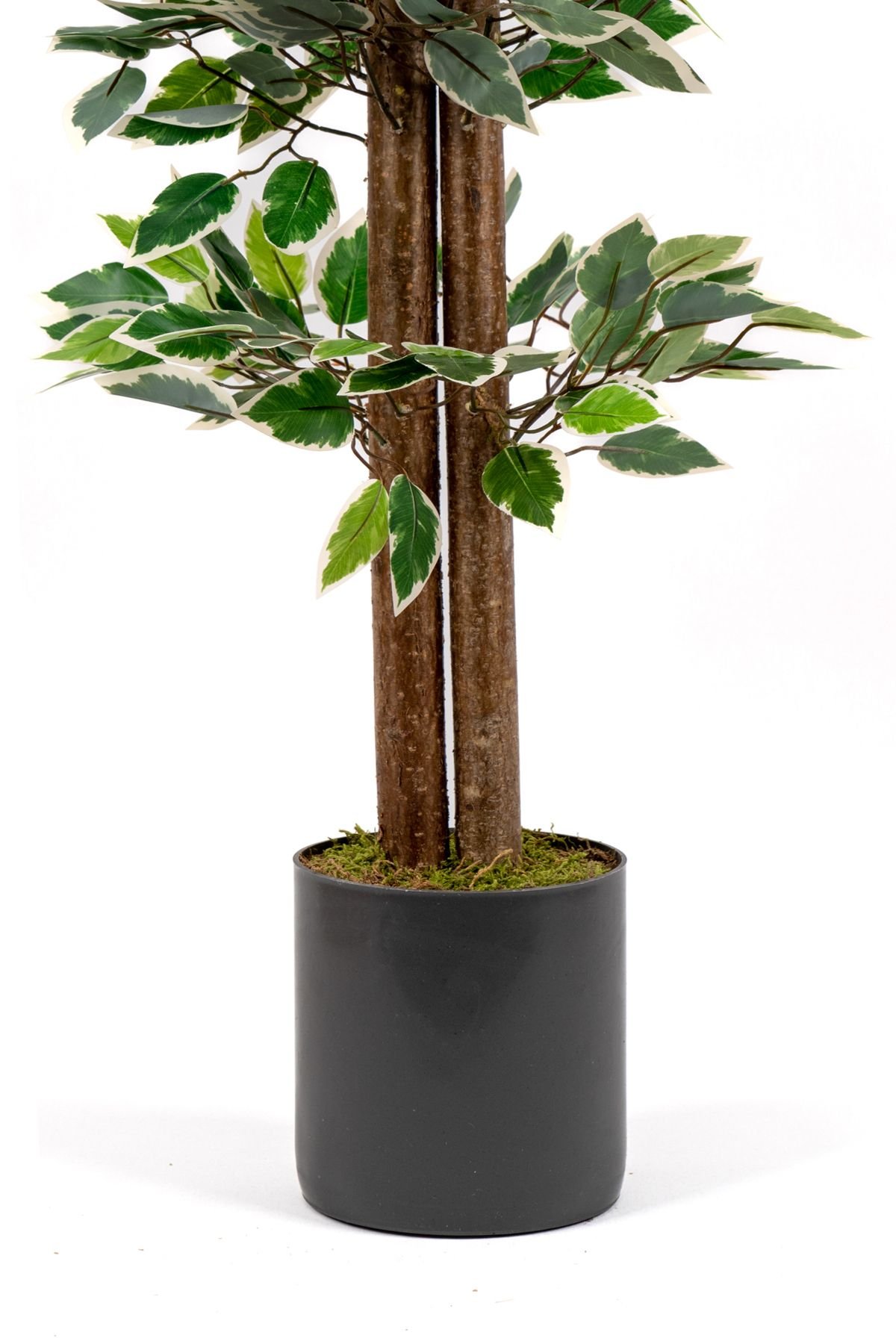 Gri Saksıda 100 Cm Yeşil Beyaz Yapay Benjamin Ağacı
