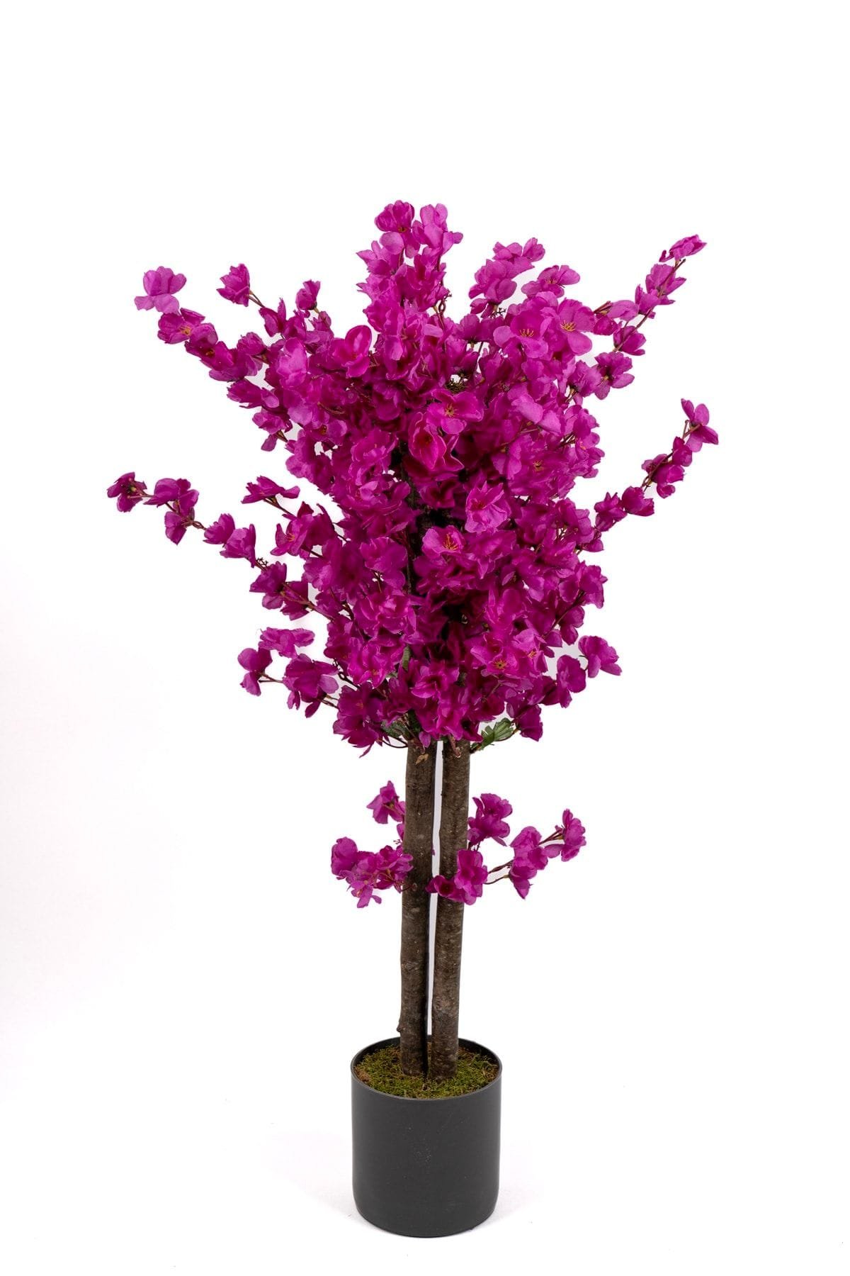 Gri Saksıda Mor Renkli Yapay Bahardalı Ağacı 100 Cm