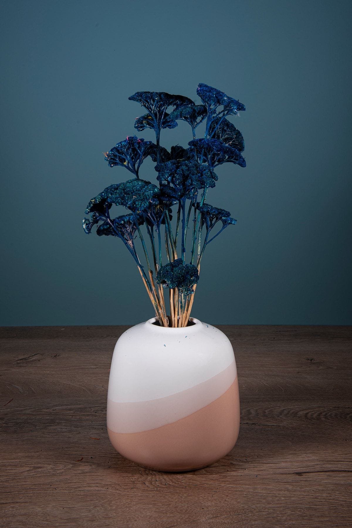 - Taş Detaylı Beyaz Saksıda 12 Yapraklı 50 cm Yapay Salon Çiçeği