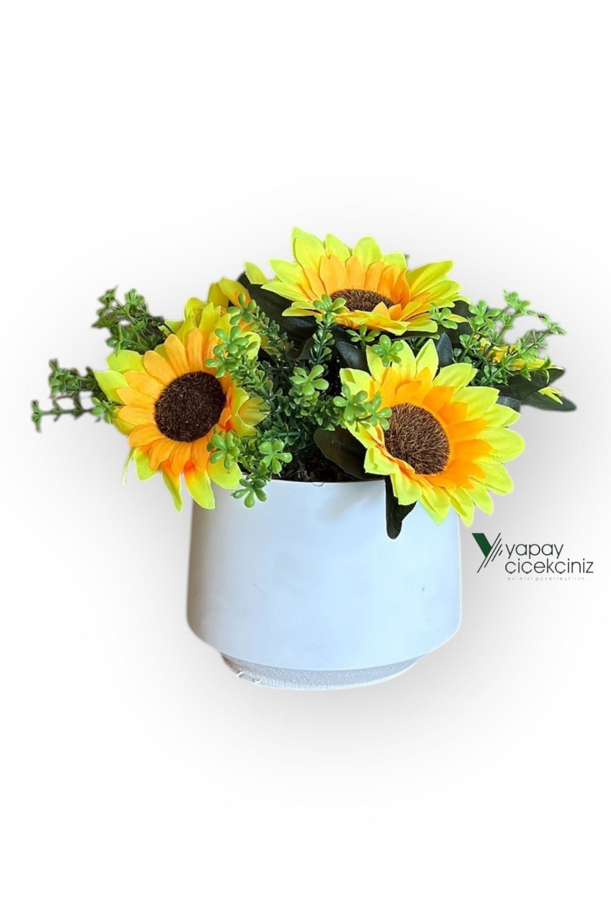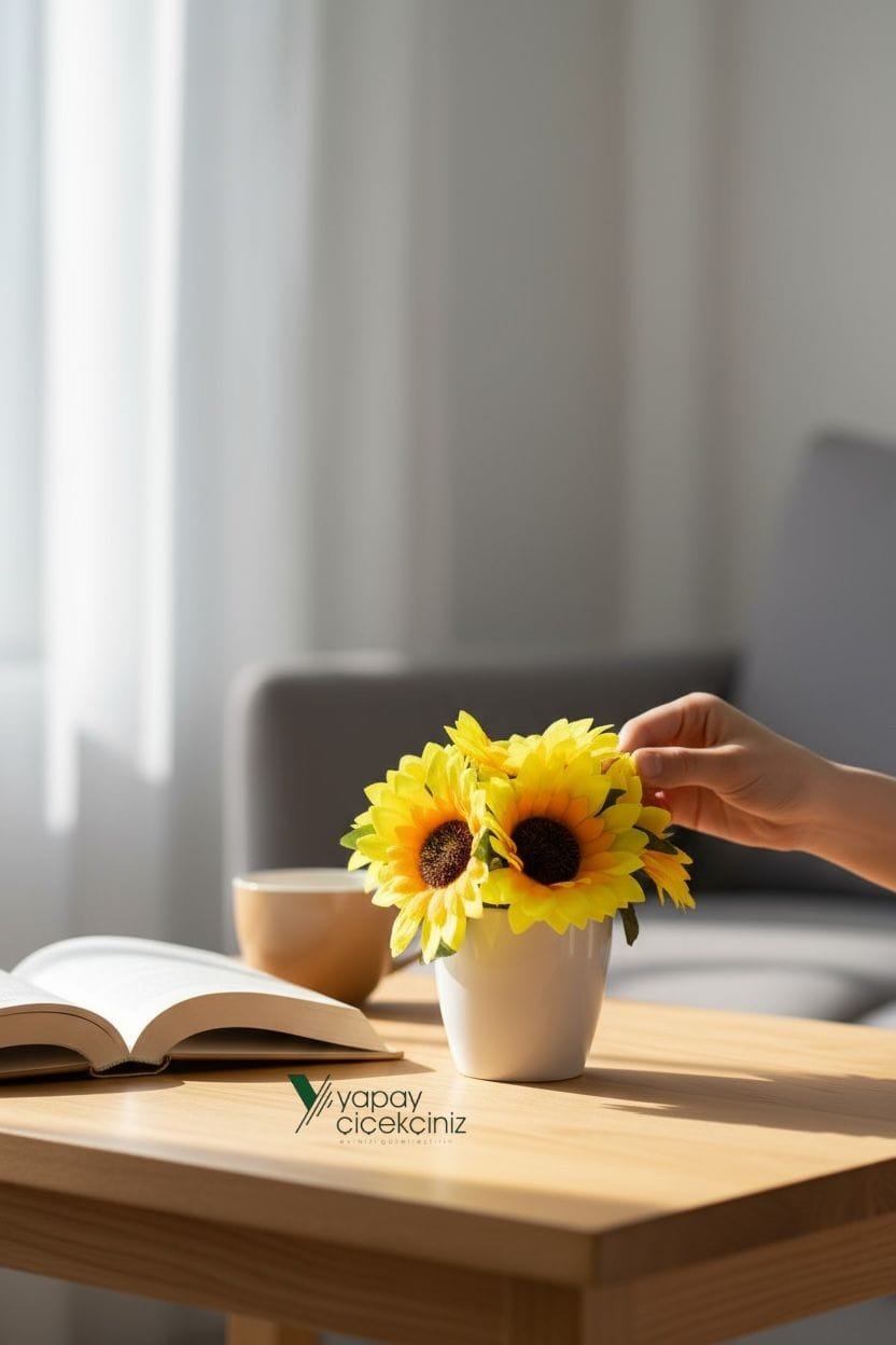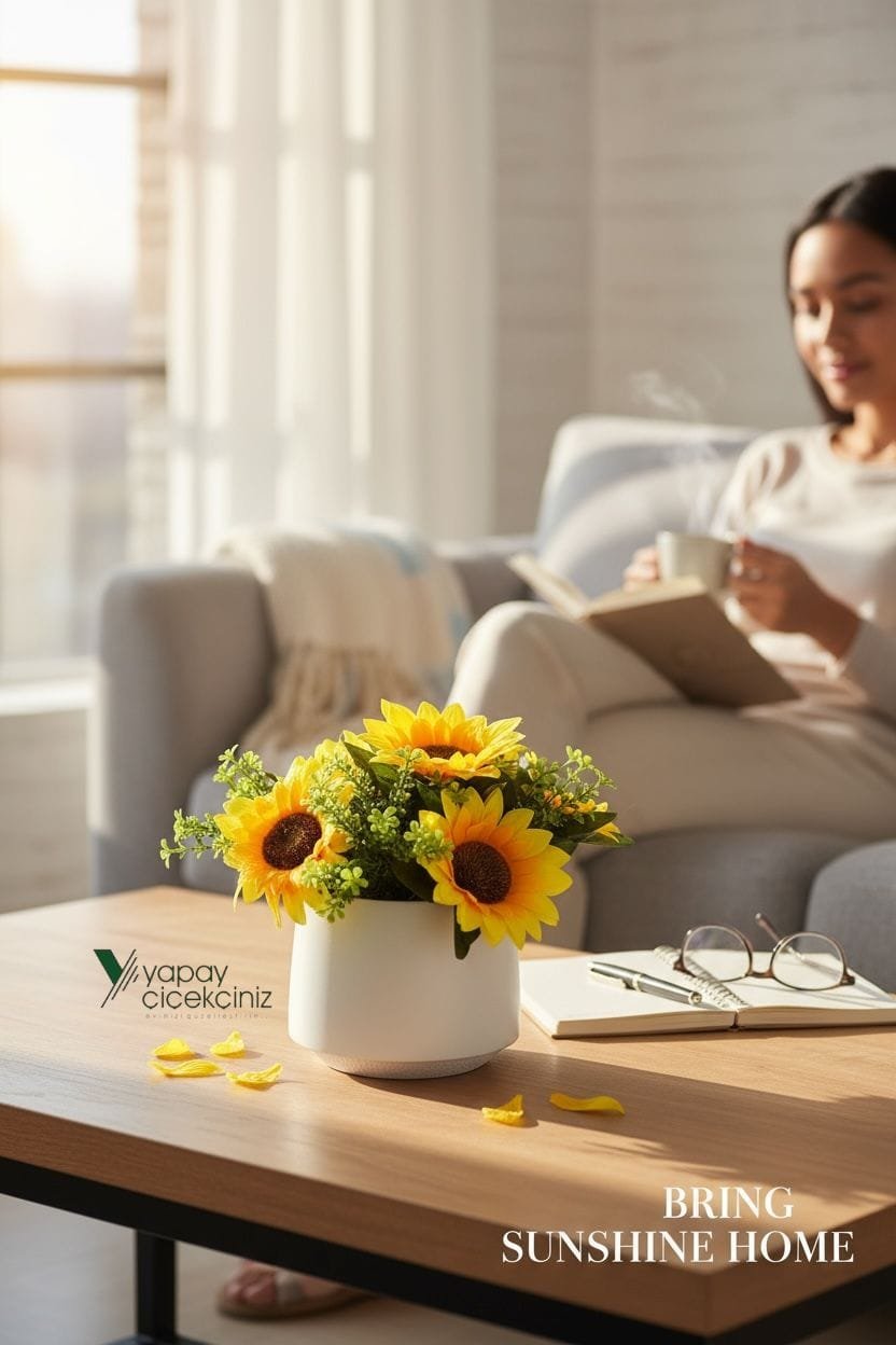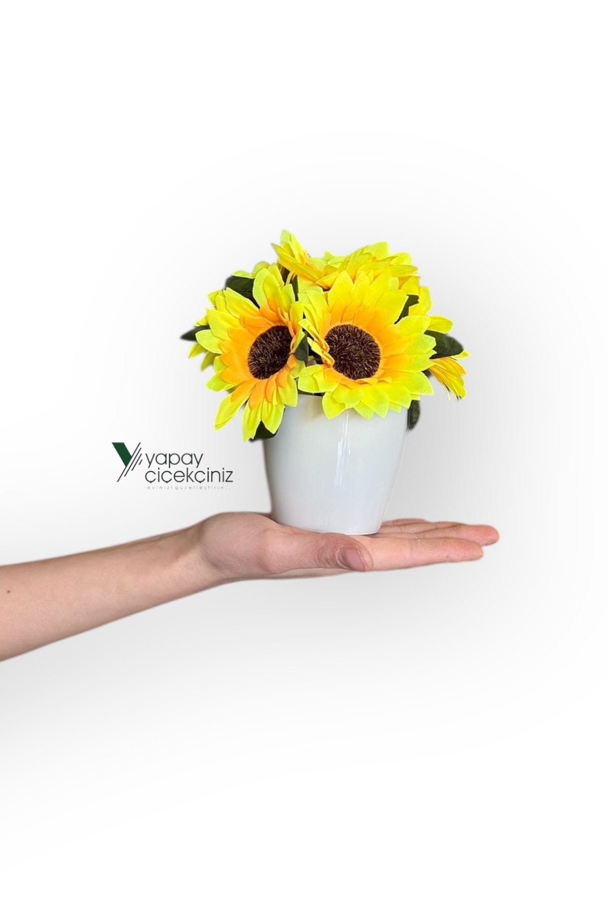 Güneşin enerjisini yılın her günü eve taşımak için tasarlandı. Modern beyaz saksısı ile minimal dekorlara uyum sağlar. Gerçekçi doku ve canlı renkleri sayesinde fotoğraflarda ve vitrinlerde etkili durur. Sulama, budama, güneş takibi gerekmez; yeni nesil yapay çiçek elyafı formunu uzun süre korur.