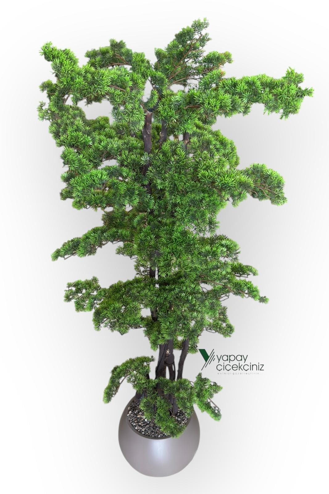 Doğu felsefesinin zarafetini ve minimalizmin sadeliğini mekanlarınıza taşıyın! Bu 180 cm boyundaki muhteşem yapay bonzai ağacı, özenle şekillendirilmiş dalları ve taş detaylı küre saksısıyla bir dekorasyon parçasından çok daha fazlası – bir huzur ve dinginlik kaynağı.