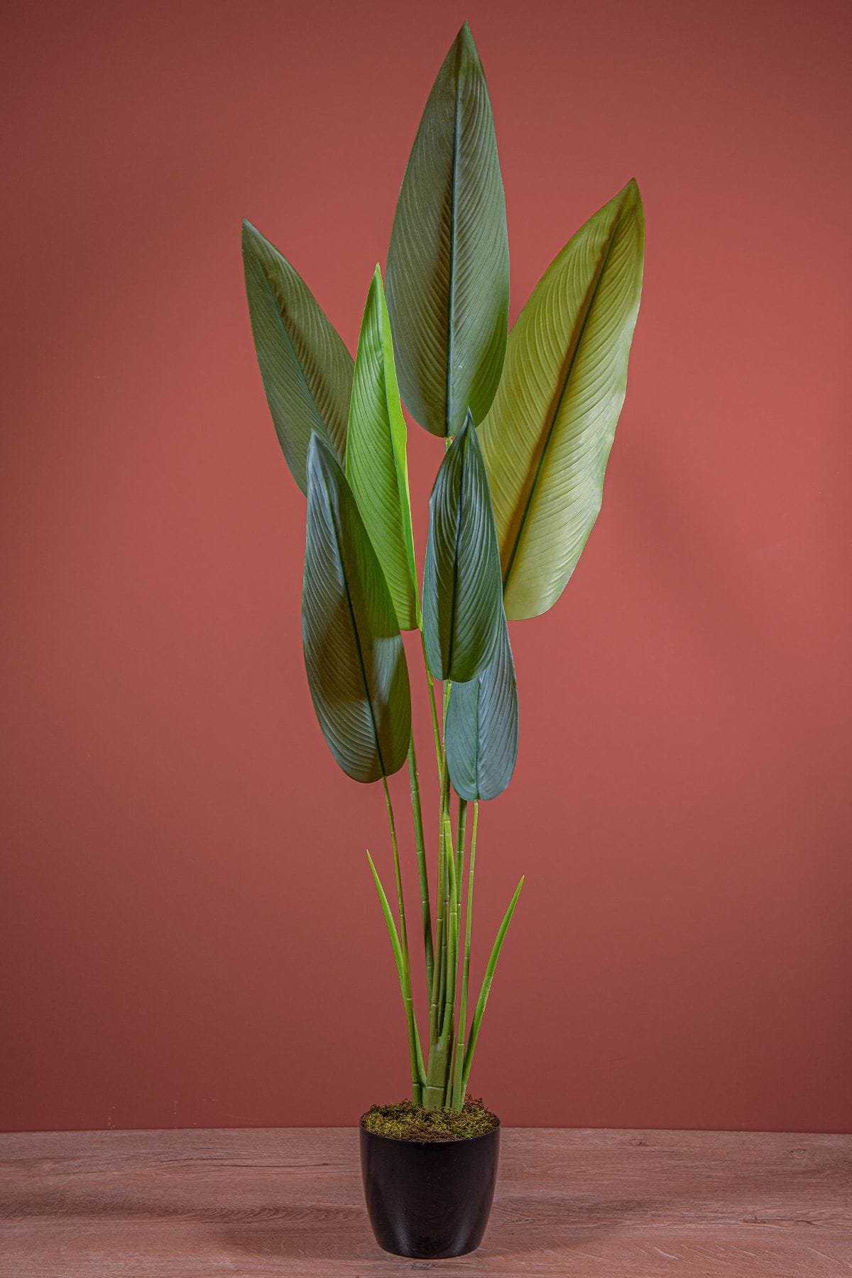 - Siyah Saksıda Çim Detaylı Büyük Yapraklı Yapay Difenbahya Ağacı 120 Cm