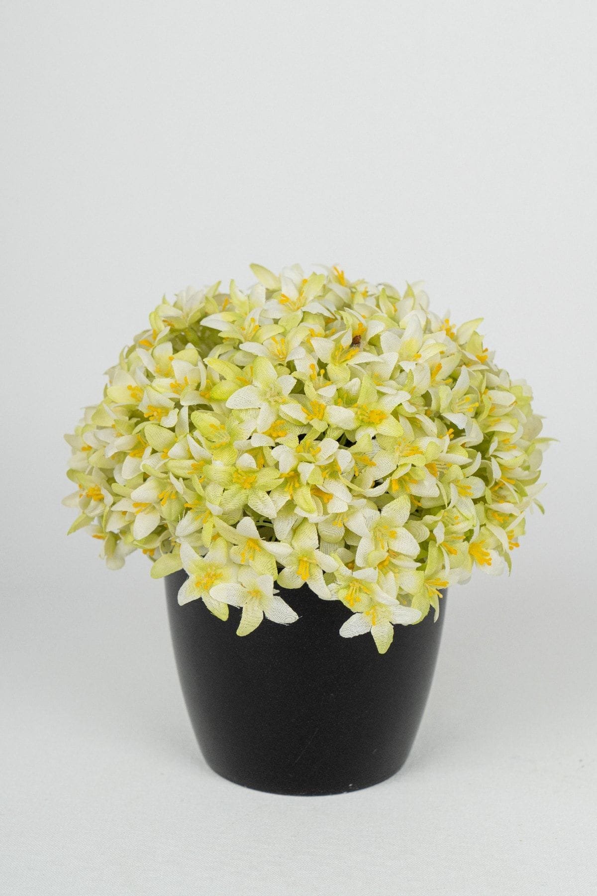 Siyah Saksıda Dekoratif Top Bahardalı Çiçeği