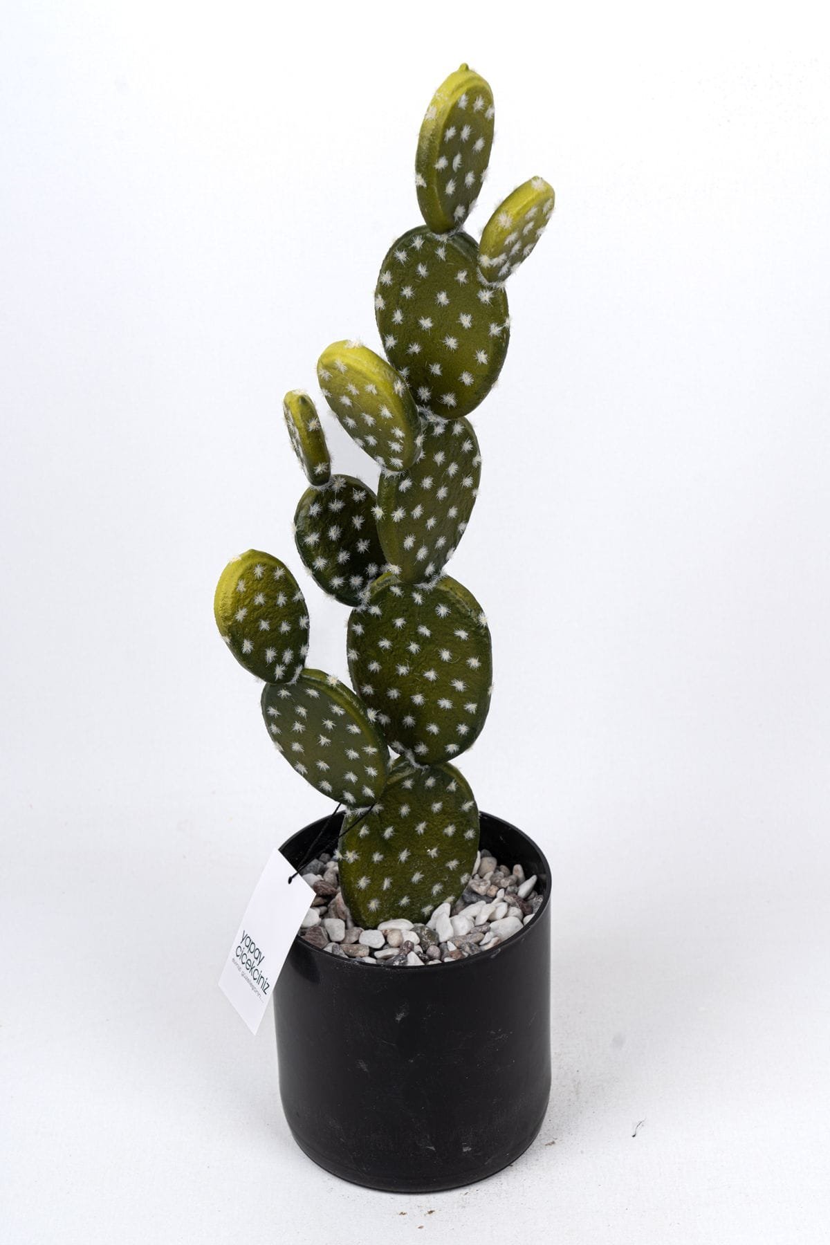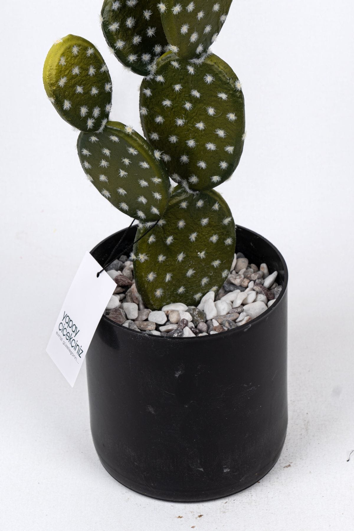 Taş Kaplı Siyah Saksısında Yapay Texas Kaktüs