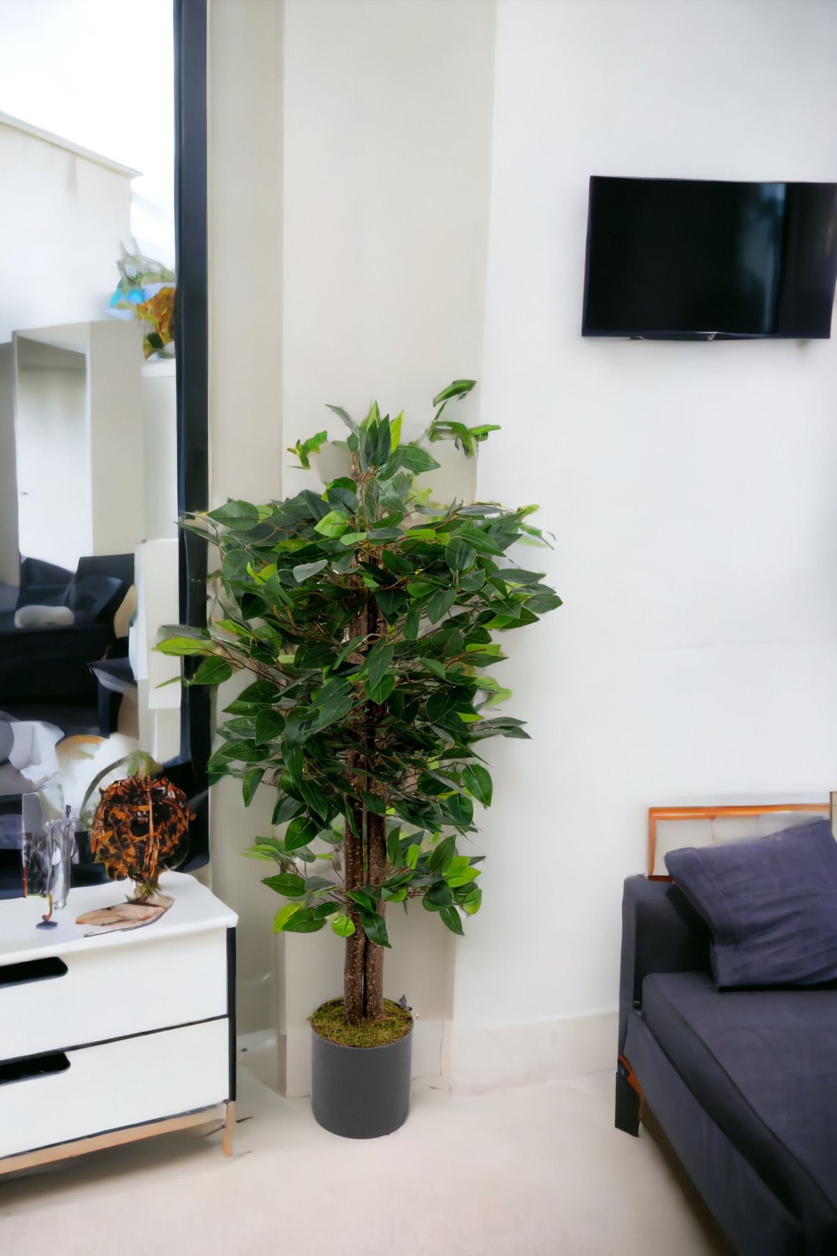Yapay benjamin ağacımız, doğal ağaç gövdesi üzerine 400Den fazla ıslak görünümlü yoğun yapraklar kullanılarak gerçeğe en yakın şekilde tasarlanmıştır. ; Gerçek benjamin ağacının aksine ağacımız sonsuza dek canlı ve yeşil rengini korumaktadır. ; Her hangi bir bakım gerektirmez. ; Ağaç kutudan çıkarıldığında tam boyutuna ulaşması için sadece 2-3 dakikaya ihtiyacınız vardır. Tüm dallar, gerektiğinde farklı konumlara ayarlanabilmeleri için sağlam metal tellerle donatılmıştır, ayrıca mini ışıkları ve diğer küçük nesneleri destekleyecek kadar güçlüdürler. ; Ağaç plastik saksı içerisine beton ile sabitlenmiş olup, çocuklarınız ve evcil hayvanlarınız temas ettiğinde hemen devrilme yapmaz. ; Saksı rengi:Gri ; Saksı yüksekliği:15 cm ; Saksı çapı:15 cm ;